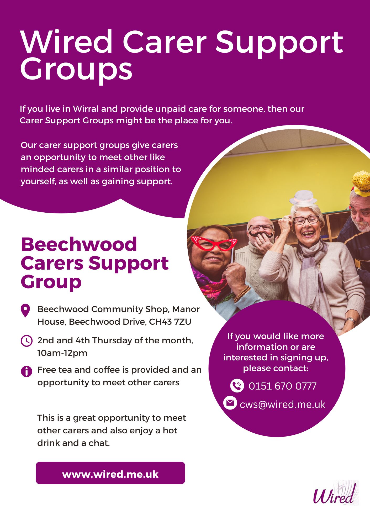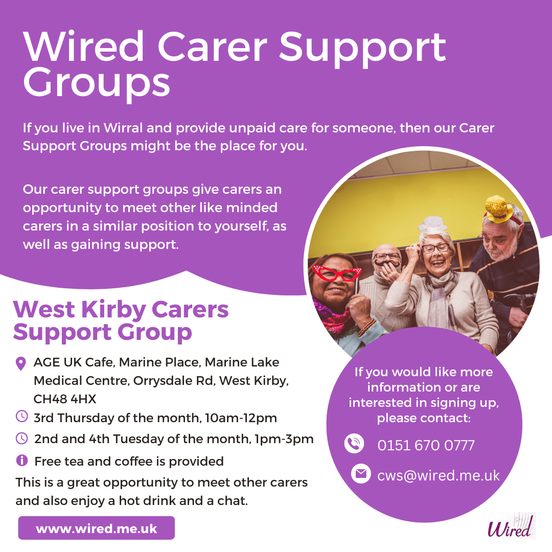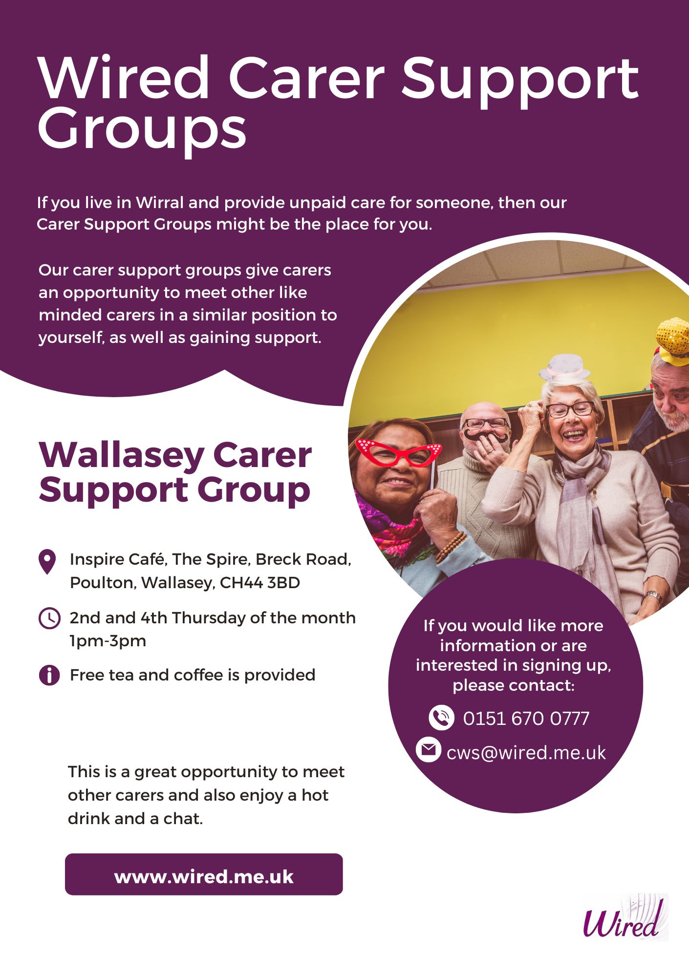 If you are interested in starting a carer support group in your area, or you would like us to explore starting a group in your area, then please email get in touch with the Carers Health and Wellbeing Service by emailing cws@wired.me.uk or calling 0151 670 0777. We will be happy to provide practical support to help get the group started, practical support could include finding a venue, some initial support with group running costs, help with leaflets and promoting the group and useful tips for making sure the group is an accessible and welcoming space for carers.
