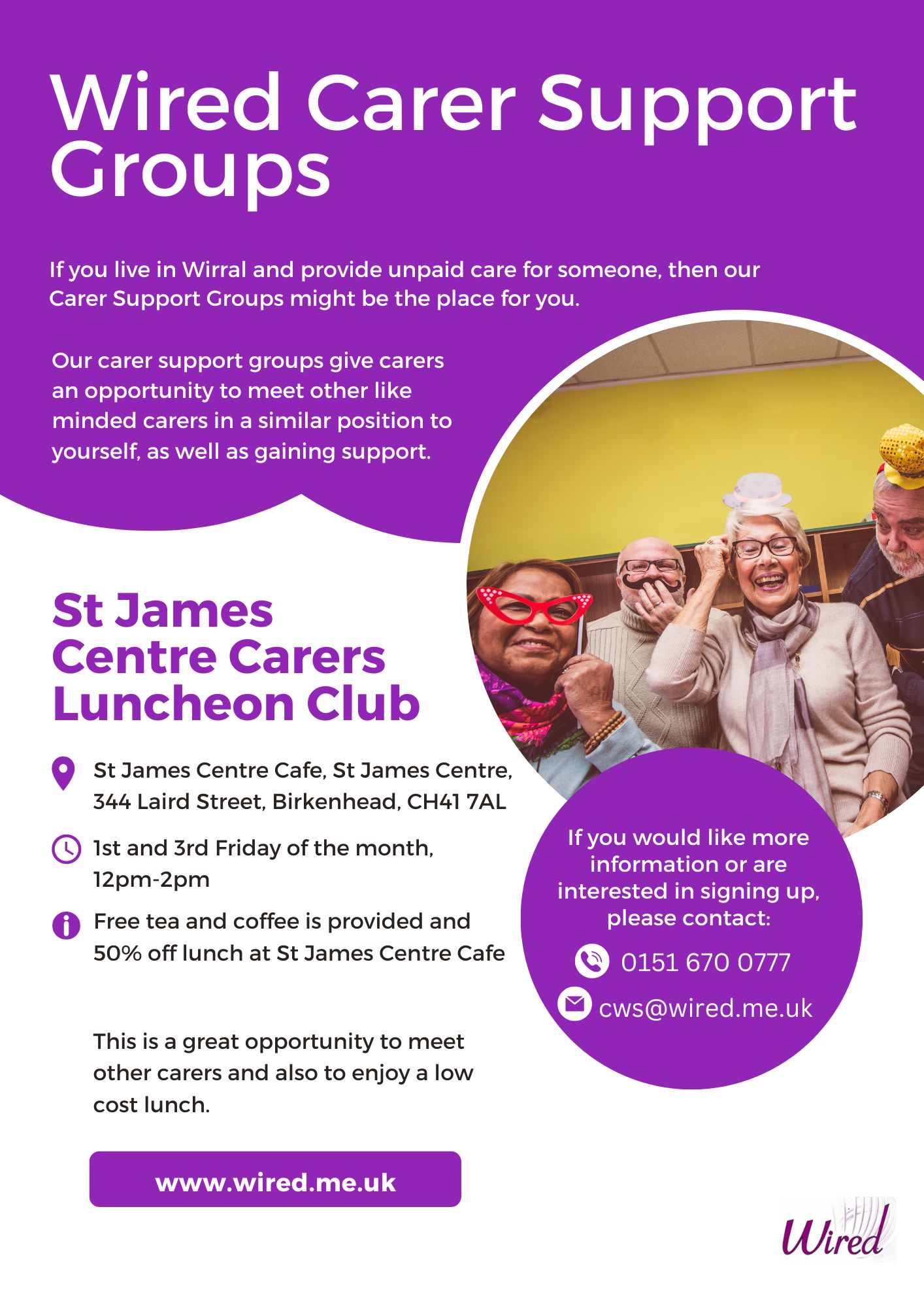 More information: Free tea and coffee and 50% of lunch at the St James Centre Cafe. This is a great opportunity to meet other carers and also enjoy a low cost lunch. Free on street parking available
