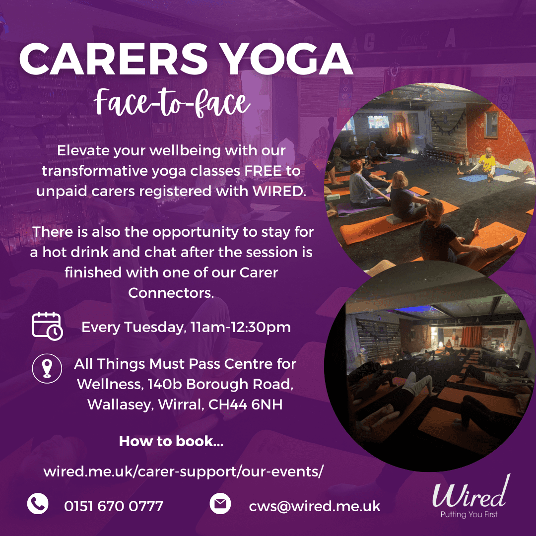 More information: Elevate your wellbeing with our transformative yoga classes FREE to unpaid carers registered with WIRED. Opportunity to stay for a hot drink and chat after the session is finished with one of our Carer Connectors.