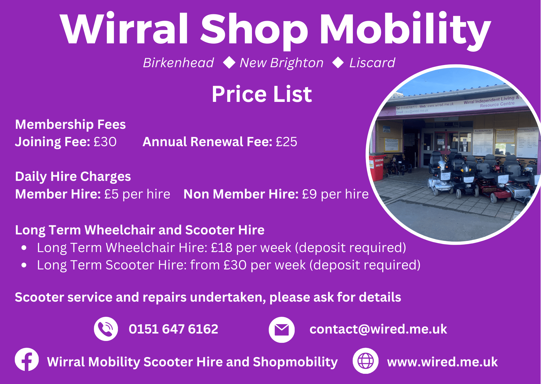 Liscard Centre – Liscard Shopmobility, Liscard Crescent, Wallasey, Wirral, CH44 1AE – Tel: 0151 606 4665
